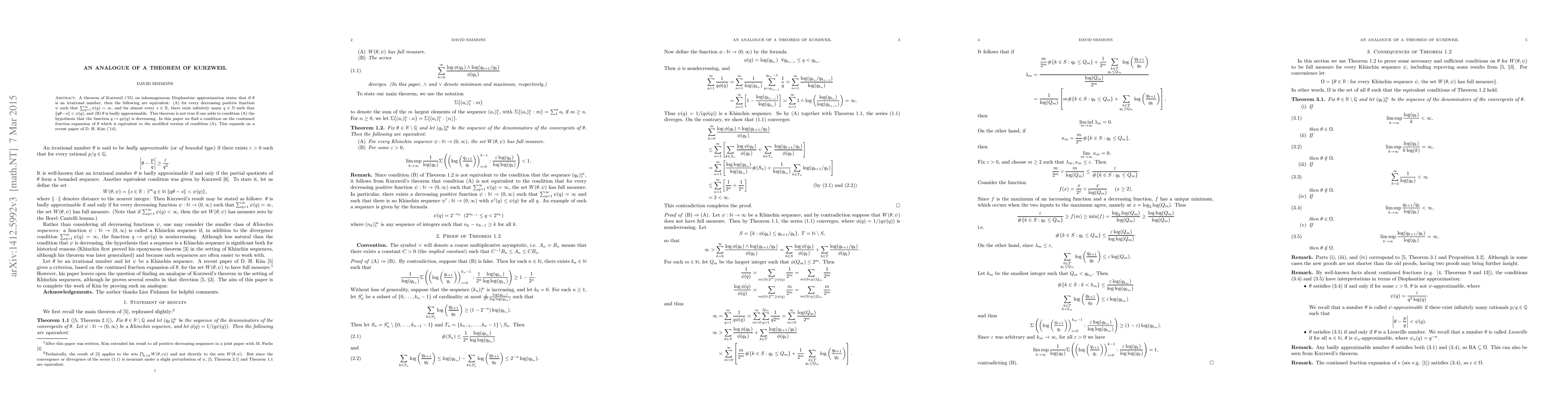 A paper extends a theorem on inhomogeneous Diophantine approximation by finding an equivalent condition for a modified version of the original statement. It focuses on the continued fraction expansion of irrational numbers.