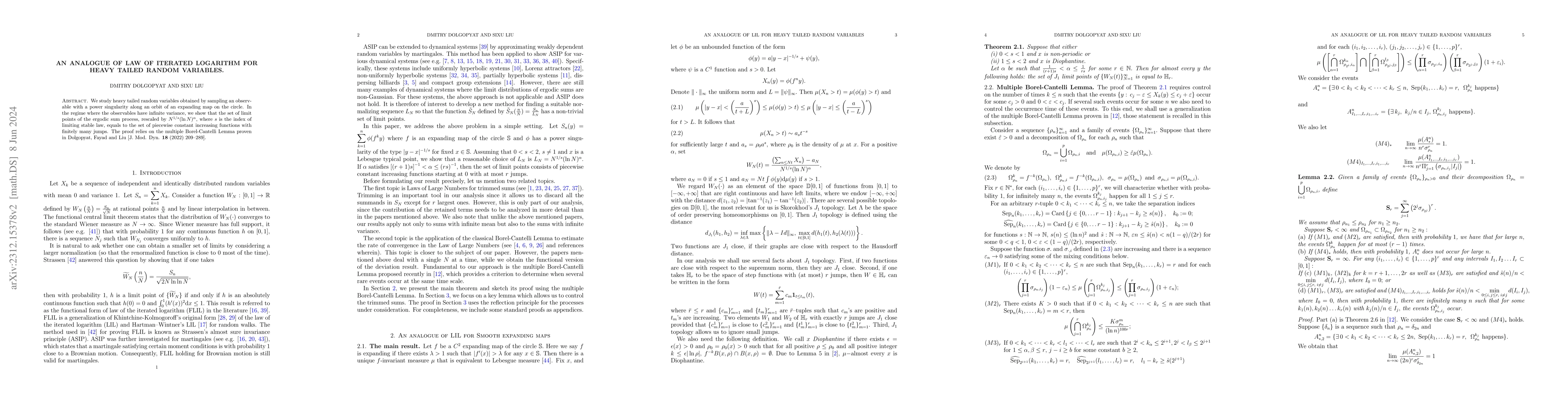 Summary: This paper establishes an analogue of the Law of Iterated Logarithm for heavy-tailed random variables derived from observables with power singularities. It shows that the rescaled ergodic sum process converges to piecewise constant functions with finite jumps, using results from a multiple Borel-Cantelli Lemma.