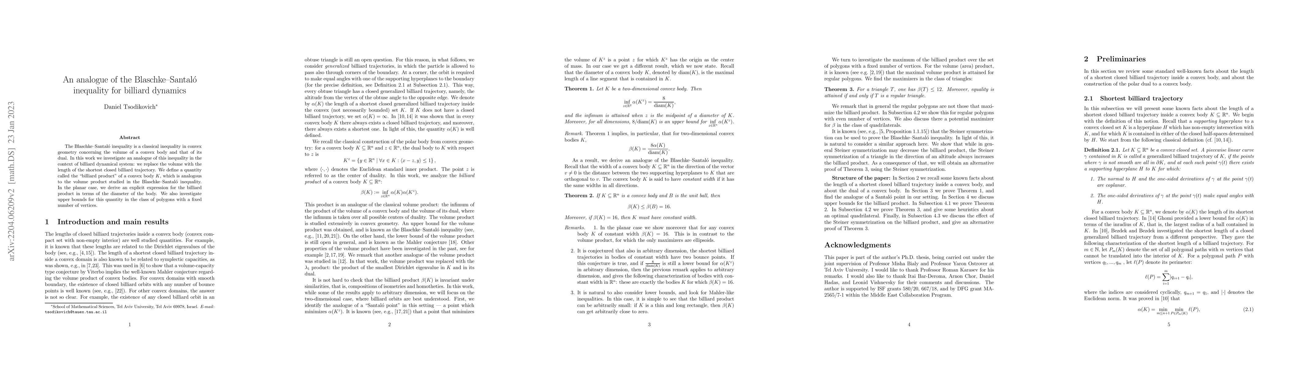 This paper explores an analogue of the Blaschke-Santaló inequality within billiard dynamics, replacing volume with the length of the shortest closed billiard trajectory. It introduces the "billiard product" for convex bodies and provides an explicit expression for it in terms of the body's diameter in the planar case, along with upper bounds for polygons with a fixed vertex count.