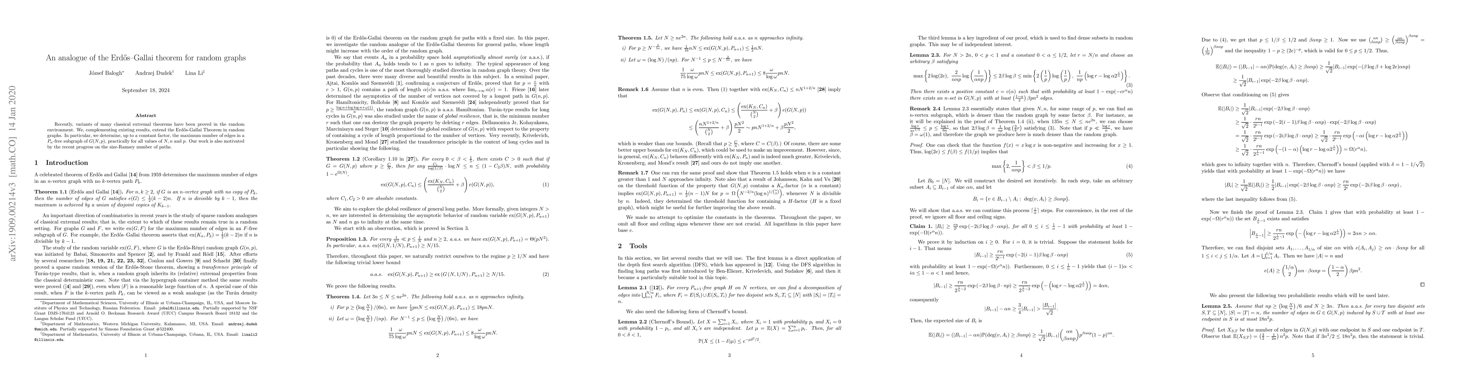 The paper extends the Erdős-Gallai theorem to random graphs, determining the maximum number of edges in a $P_n$-free subgraph of $G(N,p)$ for most values of $N, n$, and $p$, motivated by recent advancements in size-Ramsey numbers for paths.