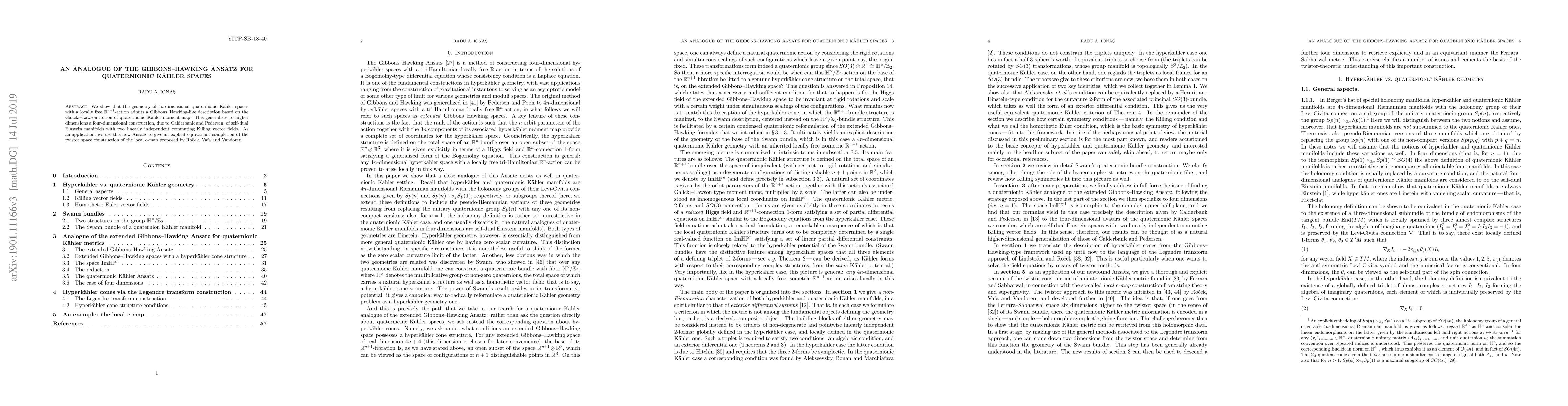 This paper presents a higher-dimensional analogue of the Gibbons-Hawking Ansatz for quaternionic Kähler spaces, utilizing the Galicki-Lawson moment map concept. It extends a four-dimensional construction for self-dual Einstein manifolds and provides an explicit equivariant completion of the twistor space local c-map.