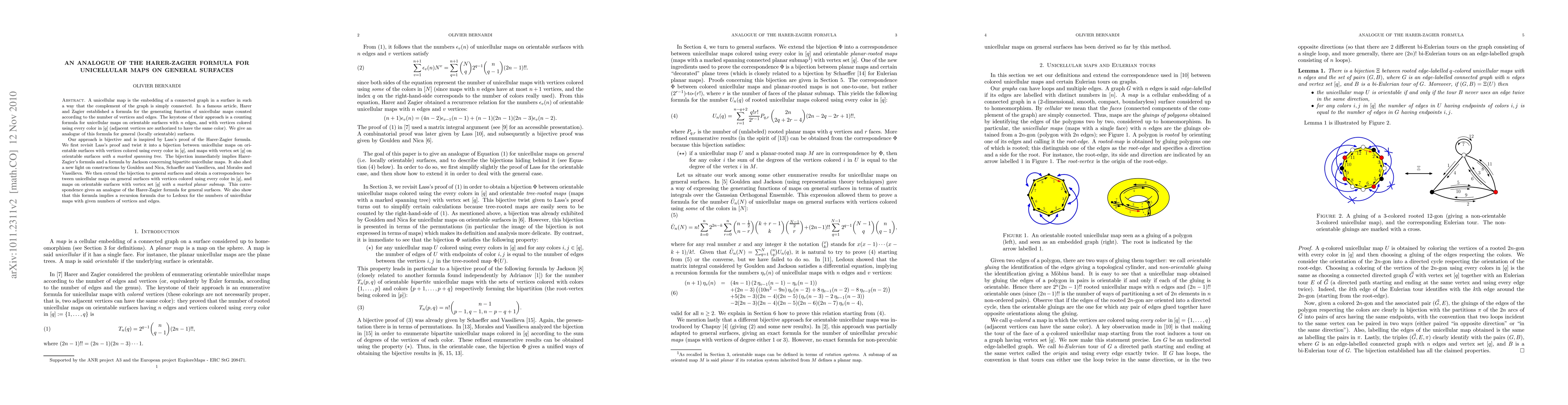 This paper presents an analogue of the Harer-Zagier formula for unicellular maps on general (locally orientable) surfaces, extending Lass's bijective proof for orientable surfaces. The authors establish a bijection between colored unicellular maps on general surfaces and maps on orientable surfaces with marked planar submaps, leading to a new formula and implications for existing recursions.