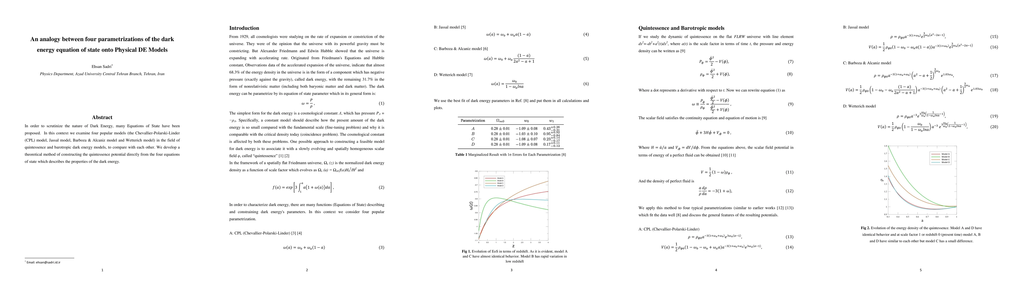 This paper scrutinizes four popular dark energy models—CPL, Jassal, Barboza & Alcaniz, and Wetterich—to compare their parametrizations. It proposes a theoretical method to construct quintessence potentials from these equations of state to better understand the nature of dark energy.