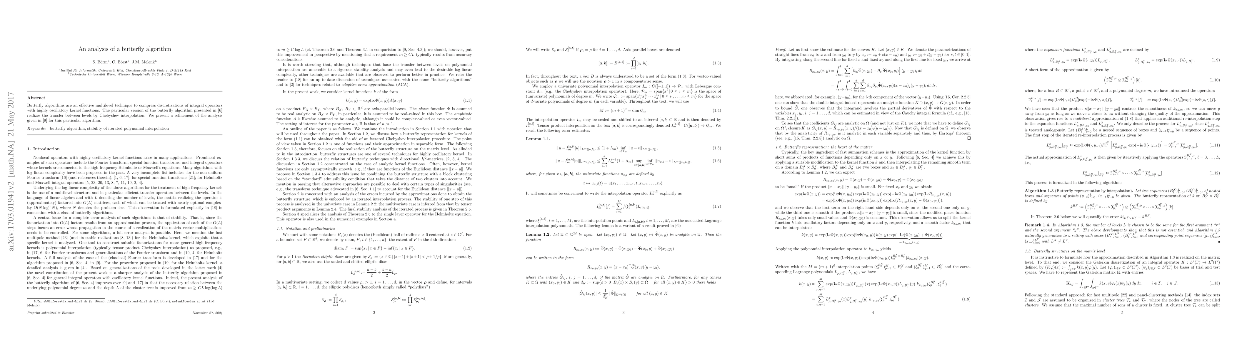 This paper analyzes a butterfly algorithm for compressing discretizations of integral operators with oscillatory kernels, focusing on the refinement of stability estimates through Chebyshev interpolation to enhance error bounds.