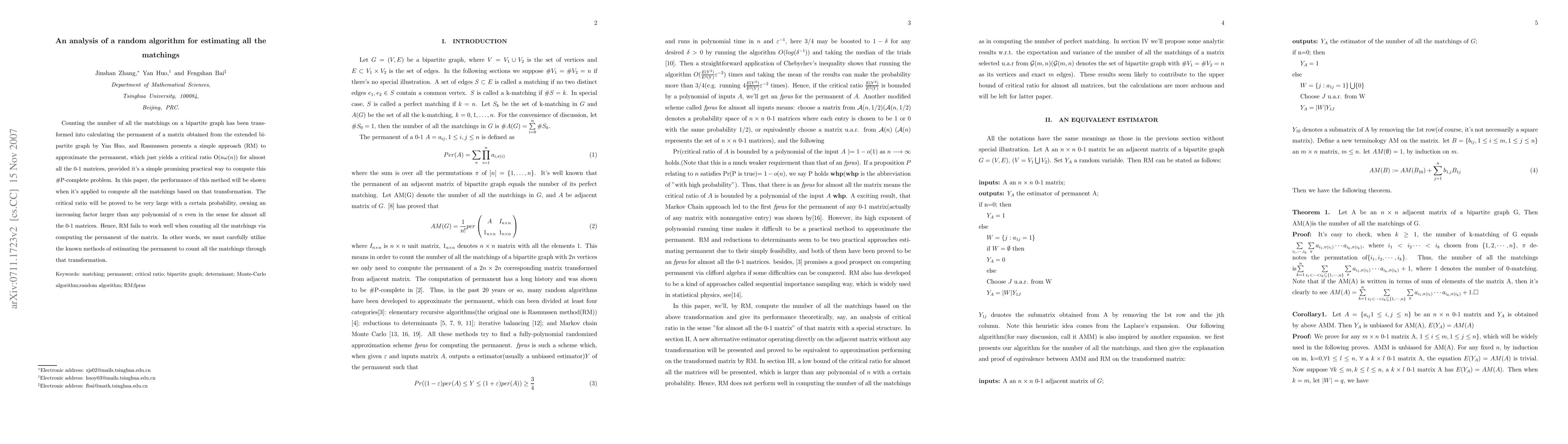 Counting the number of all the matchings on a bipartite graph has been transformed into calculating the permanent of a matrix obtained from the extended bipartite graph by Yan Huo, and Rasmussen presents a simple approach (RM) to approximate the permanent, which just yields a critical ratio O($n\omega(n)$) for almost all the 0-1 matrices, provided it's a simple promising practical way to compute this #P-complete problem. In this paper, the performance of this method will be shown when it's applied to compute all the matchings based on that transformation. The critical ratio will be proved to be very large with a certain probability, owning an increasing factor larger than any polynomial of $n$ even in the sense for almost all the 0-1 matrices. Hence, RM fails to work well when counting all the matchings via computing the permanent of the matrix. In other words, we must carefully utilize the known methods of estimating the permanent to count all the matchings through that transformation.
