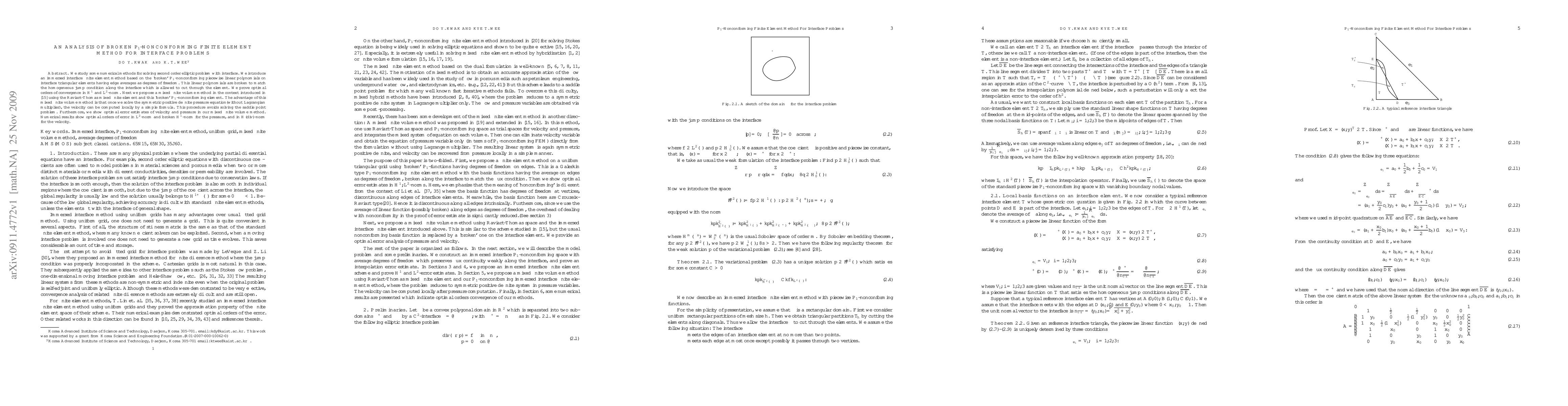 We study some numerical methods for solving second order elliptic problem with interface. We introduce an immersed interface finite element method based on the `broken' $P_1$-nonconforming piecewise linear polynomials on interface triangular elements having edge averages as degrees of freedom. This linear polynomials are broken to match the homogeneous jump condition along the interface which is allowed to cut through the element. We prove optimal orders of convergence in $H^1$ and $L^2$-norm. Next we propose a mixed finite volume method in the context introduced in \cite{Kwak2003} using the Raviart-Thomas mixed finite element and this `broken' $P_1$-nonconforming element. The advantage of this mixed finite volume method is that once we solve the symmetric positive definite pressure equation(without Lagrangian multiplier), the velocity can be computed locally by a simple formula. This procedure avoids solving the saddle point problem. Furthermore, we show optimal error estimates of velocity and pressure in our mixed finite volume method. Numerical results show optimal orders of error in $L^2$-norm and broken $H^1$-norm for the pressure, and in $H(\Div)$-norm for the velocity.