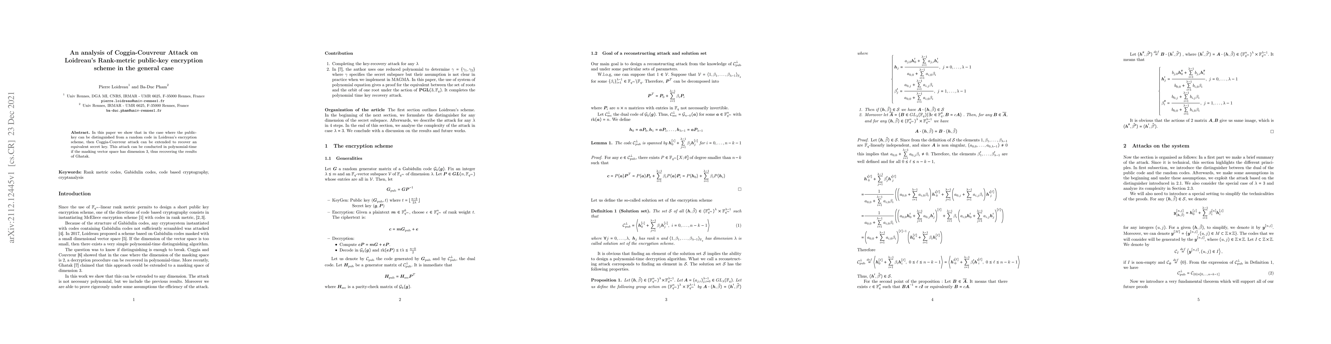 Summary: This paper demonstrates that the Coggia-Couvreur attack can be extended to recover an equivalent secret key in Loidreau's rank-metric public key encryption scheme when the public-key can be distinguished from a random code, and it can be executed in polynomial time when the dimension of the masking vector space is 3.