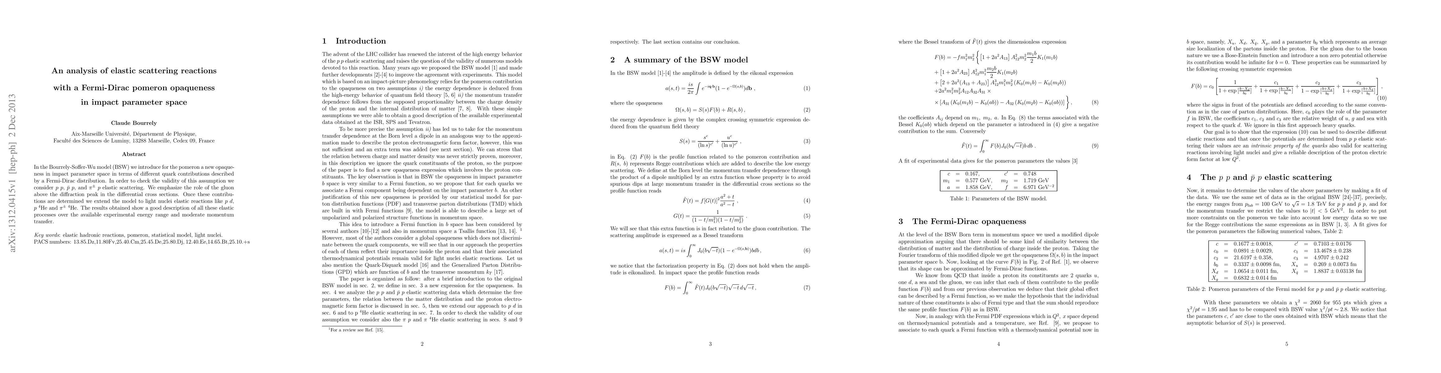 In the Bourrely-Soffer-Wu model (BSW) we introduce for the pomeron a new opaqueness in impact parameter space in terms of different quark contributions described by a Fermi-Dirac distribution. In order to check the validity of this assumption we consider $p~p$, $\bar p~p$, and $\pi^{\pm}~p$ elastic scattering. We emphasize the role of the gluon above the diffraction peak in the differential cross sections. Once these contributions are determined we extend the model to light nuclei elastic reactions like $p~d$, $p~^4\mbox{He}$ and $\pi^{\pm}~^4\mbox{He}$. The results obtained show a good description of all these elastic processes over the available experimental energy range and moderate momentum transfer.