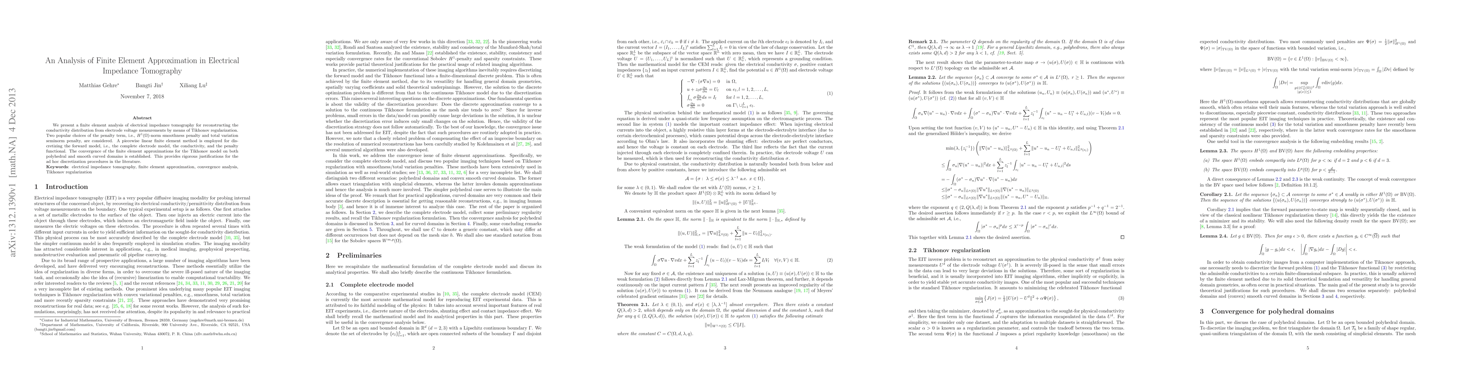 The paper provides a rigorous convergence analysis of finite element approximations for electrical impedance tomography using Tikhonov regularization, justifying existing discretization methods and paving the way for improved numerical techniques.