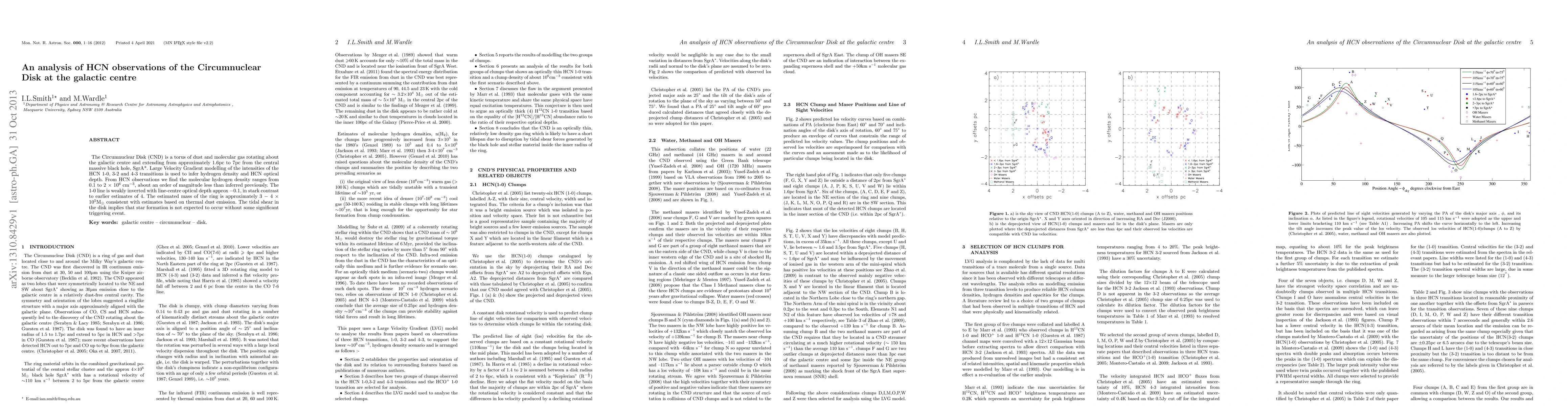 This paper analyzes HCN observations of the Circumnuclear Disk at the galactic centre, finding molecular hydrogen densities an order of magnitude lower than previously estimated, and a ring mass of 3-4 $\times$ 10$^{5}$M$_{\odot}$. The study suggests star formation is unlikely without a significant triggering event.