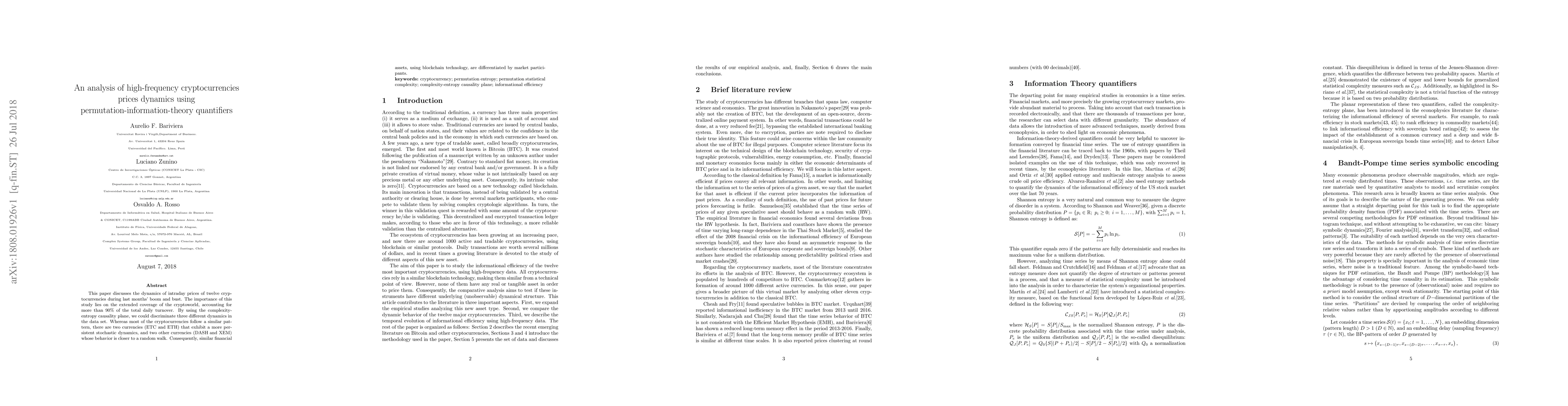 This paper discusses the dynamics of intraday prices of twelve cryptocurrencies during last months' boom and bust. The importance of this study lies on the extended coverage of the cryptoworld, accounting for more than 90\% of the total daily turnover. By using the complexity-entropy causality plane, we could discriminate three different dynamics in the data set. Whereas most of the cryptocurrencies follow a similar pattern, there are two currencies (ETC and ETH) that exhibit a more persistent stochastic dynamics, and two other currencies (DASH and XEM) whose behavior is closer to a random walk. Consequently, similar financial assets, using blockchain technology, are differentiated by market participants.