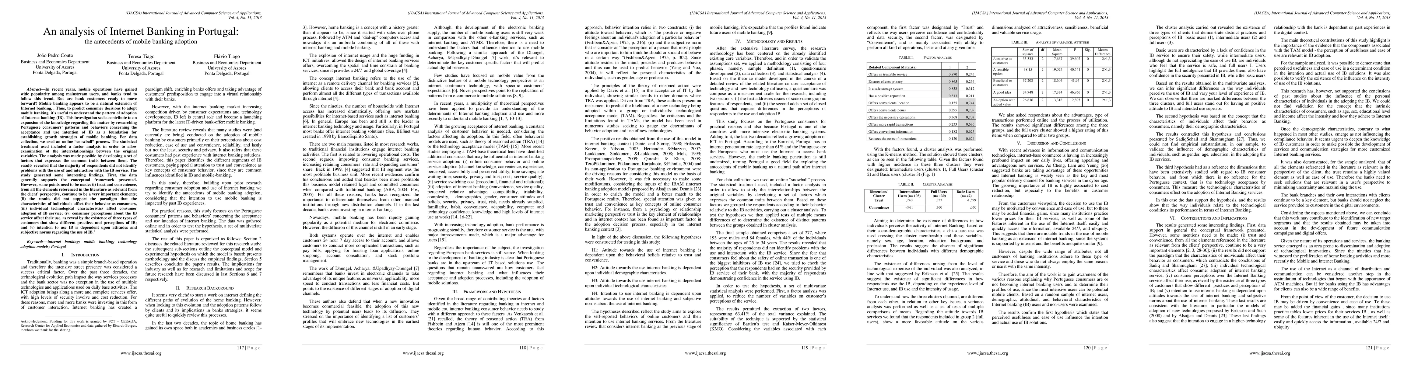 This study explores the adoption patterns of Internet banking in Portugal to predict mobile banking adoption. Findings indicate that trust and convenience are crucial, while individual characteristics do not significantly affect adoption. The research identifies three customer types based on their perceptions and usage of Internet banking.