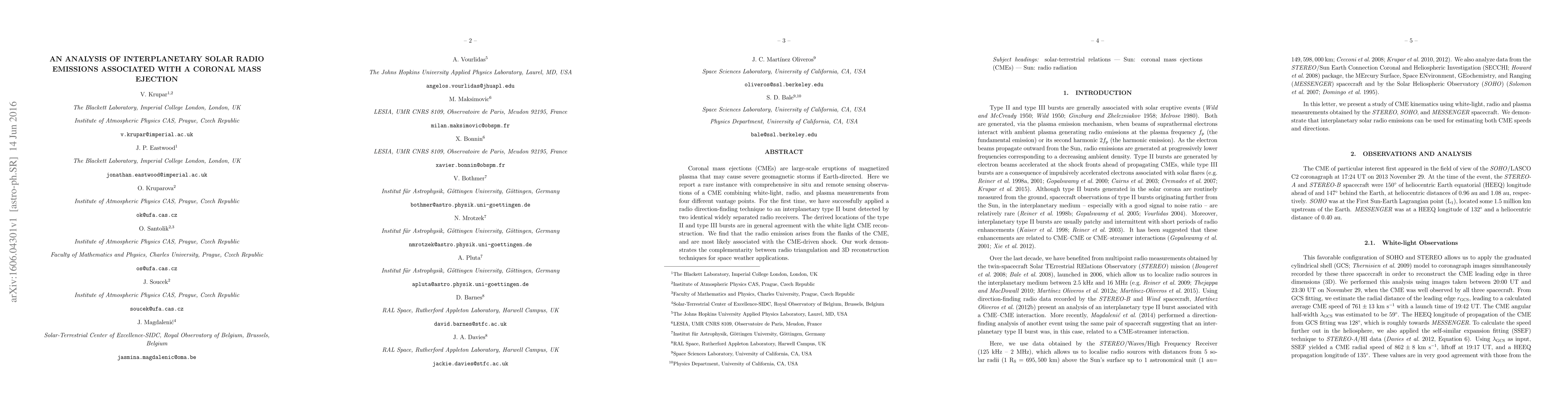 This paper analyzes interplanetary solar radio emissions linked to a coronal mass ejection (CME) using in situ and remote sensing observations from multiple vantage points. It successfully applies radio direction-finding to an interplanetary type II burst, demonstrating the association of radio emissions with the CME-driven shock and highlighting the synergy between radio triangulation and 3D reconstruction for space weather studies.