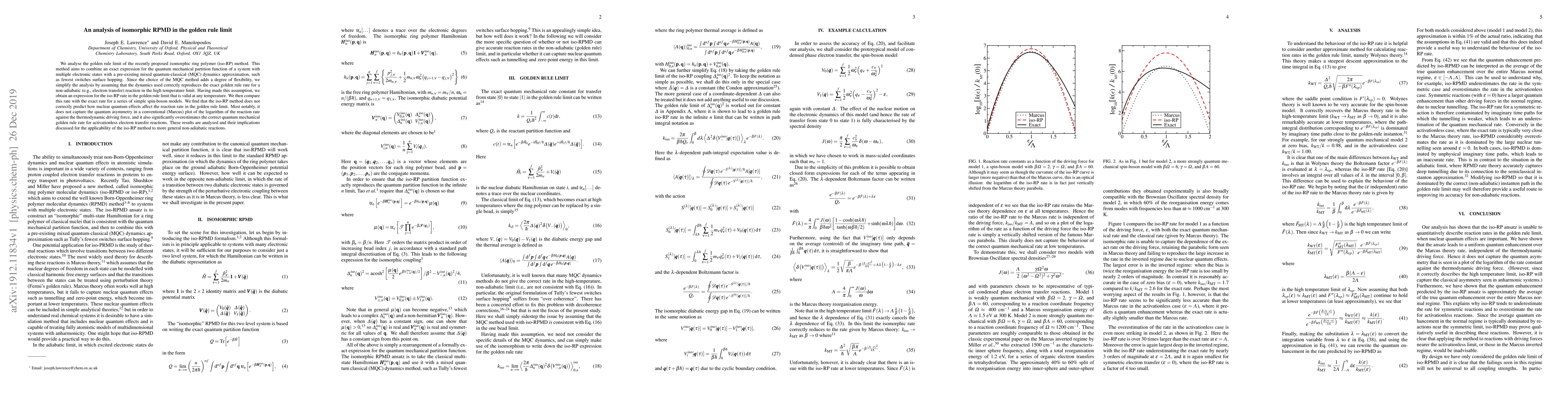A research paper analyzes an isomorphic ring polymer method for combining quantum mechanics and classical dynamics in chemical reactions, finding it doesn't accurately predict reaction rates in the golden rule limit.