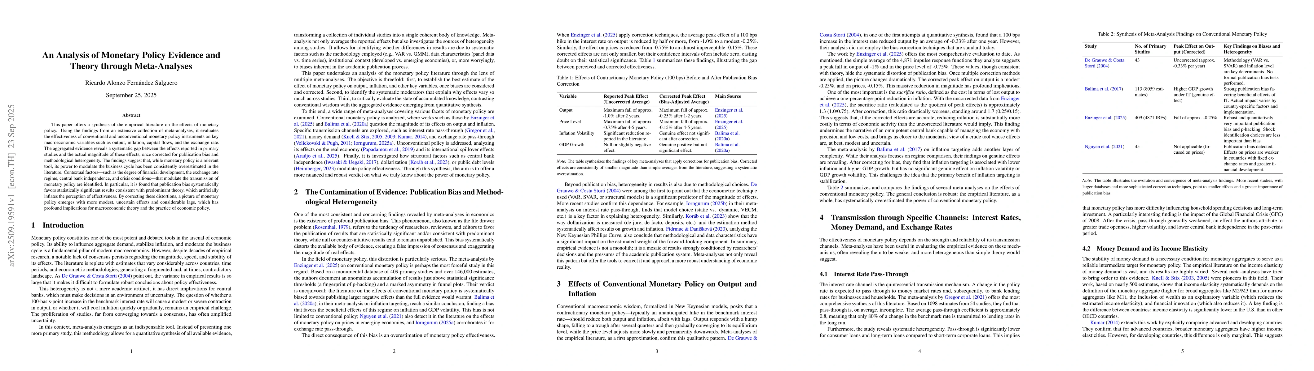 This work introduces a novel synthesis of global empirical evidence on monetary policy, emphasizing heterogeneous effects across economies and providing a more nuanced understanding of policy effectiveness.