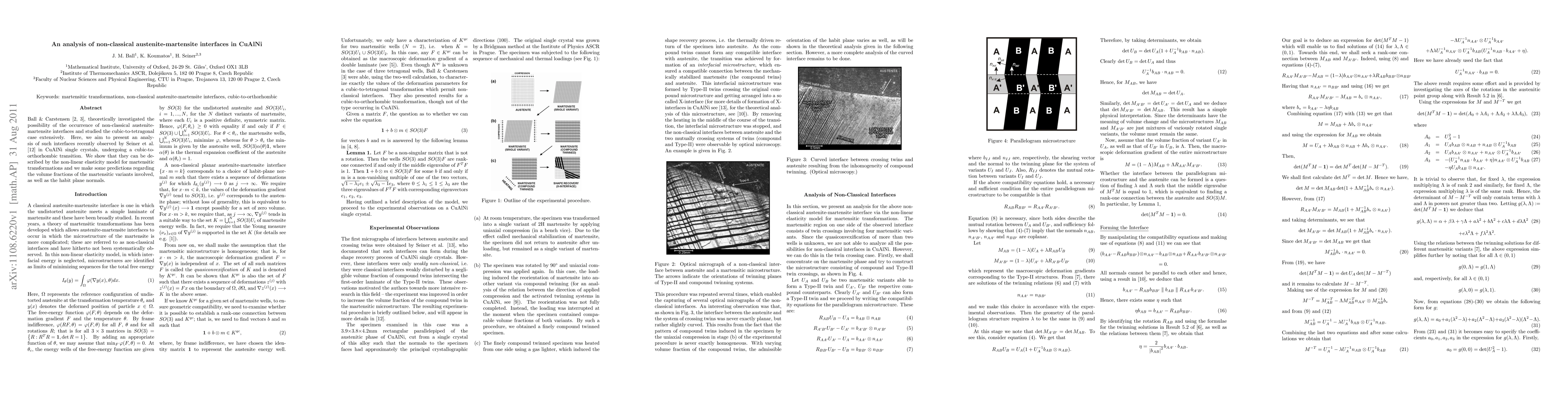 This paper analyzes non-classical austenite-martensite interfaces in CuAlNi single crystals undergoing a cubic-to-orthorhombic transition, demonstrating their description via a non-linear elasticity model and predicting martensitic variant volume fractions and habit plane orientations.