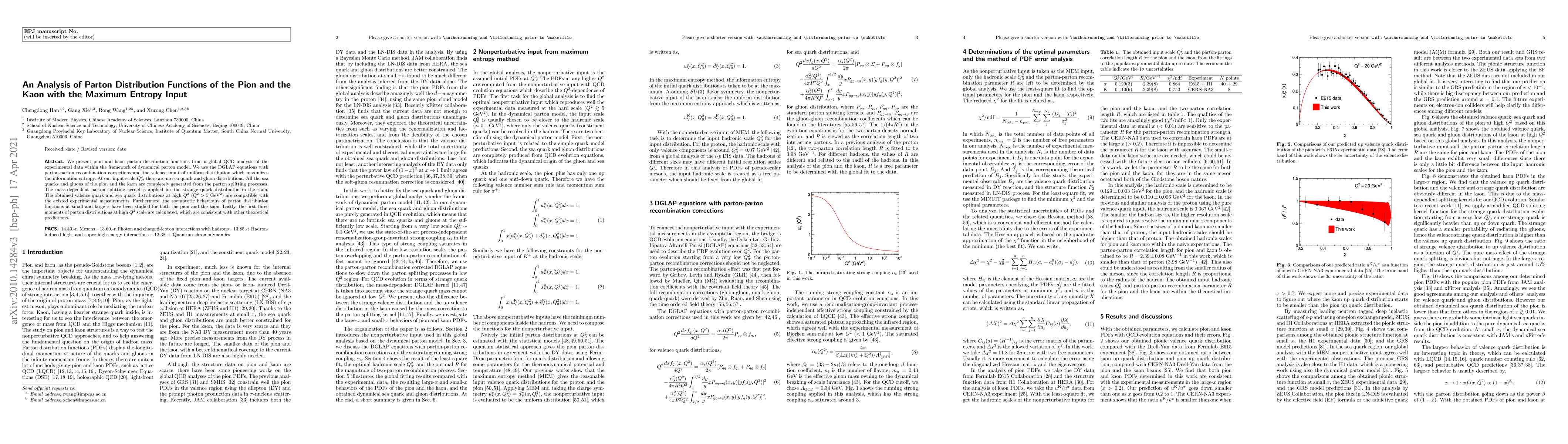 This paper presents pion and kaon parton distribution functions derived from a global QCD analysis using the DGLAP equations and maximum entropy principles, showing compatibility with experimental data and exploring their asymptotic behavior. The study also calculates the first three moments of these distributions, consistent with theoretical predictions.