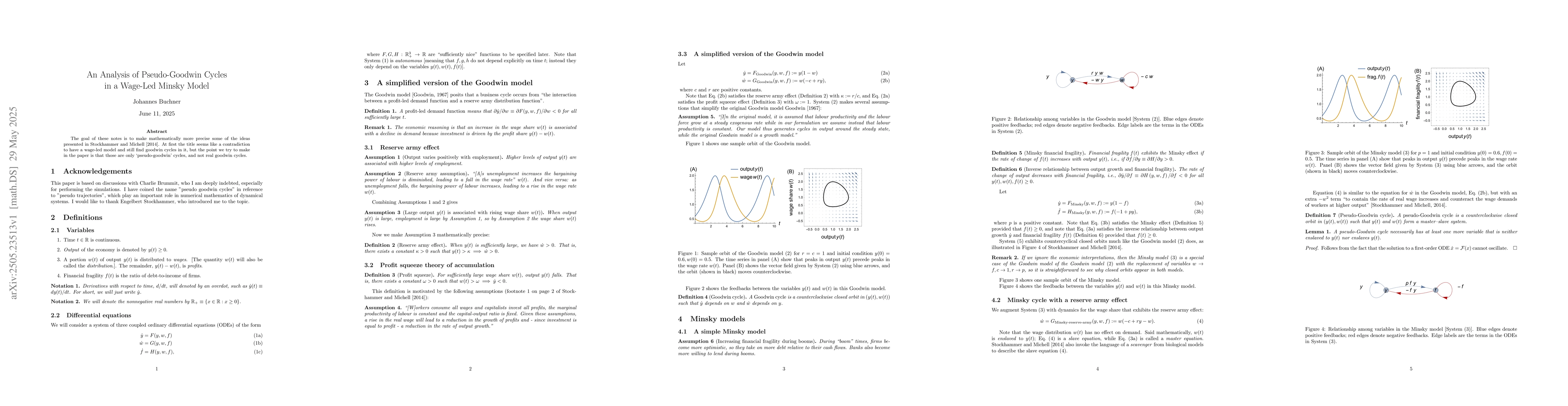 The paper mathematically formalizes the concept of 'pseudo-Goodwin cycles' in a wage-led Minsky model, identifying a Hopf bifurcation and analyzing the dynamics resulting from the interaction between output, wages, and financial fragility.