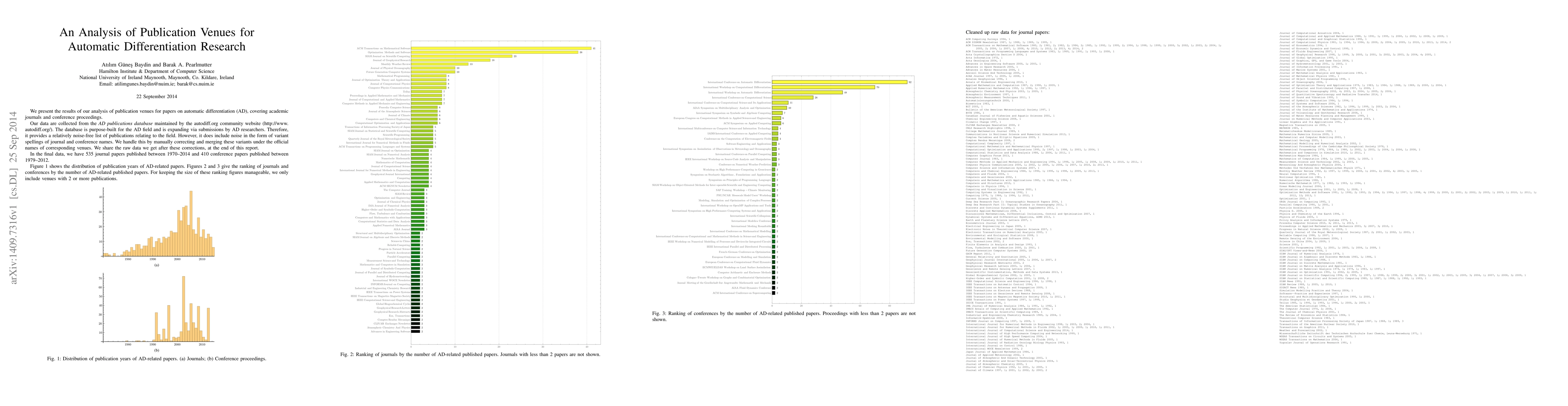 This study analyzes publication venues for automatic differentiation research, finding that academic journals dominate over conference proceedings in AD publications. The data reveals a relatively noise-free list of publications thanks to the autodiff.org community website's database.