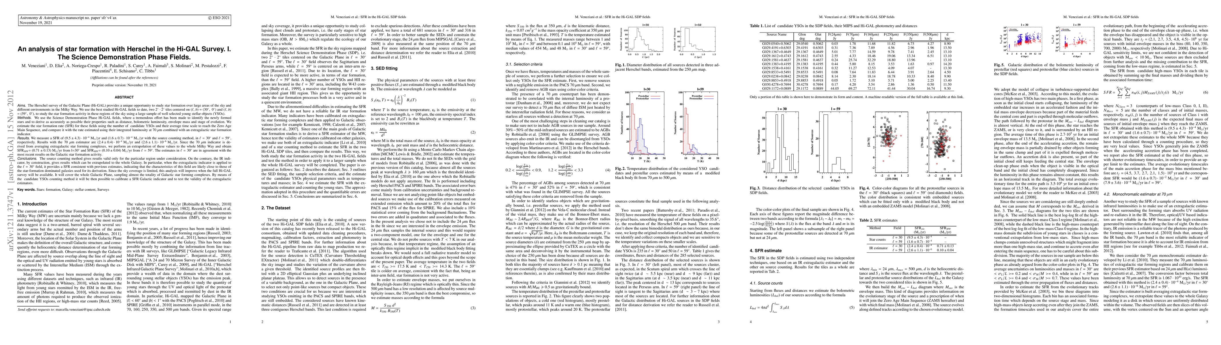 This paper analyzes star formation in the Galactic Plane using Herschel's Hi-GAL survey data, estimating star formation rates (SFR) in two fields. The SFR estimates from young stellar objects (YSOs) and 70 micron luminosity suggest a Milky Way-wide SFR of ~0.71 Msol/yr in one field, aligning with recent star formation activity estimates. The study highlights the potential of the full Hi-GAL survey for more comprehensive analysis.