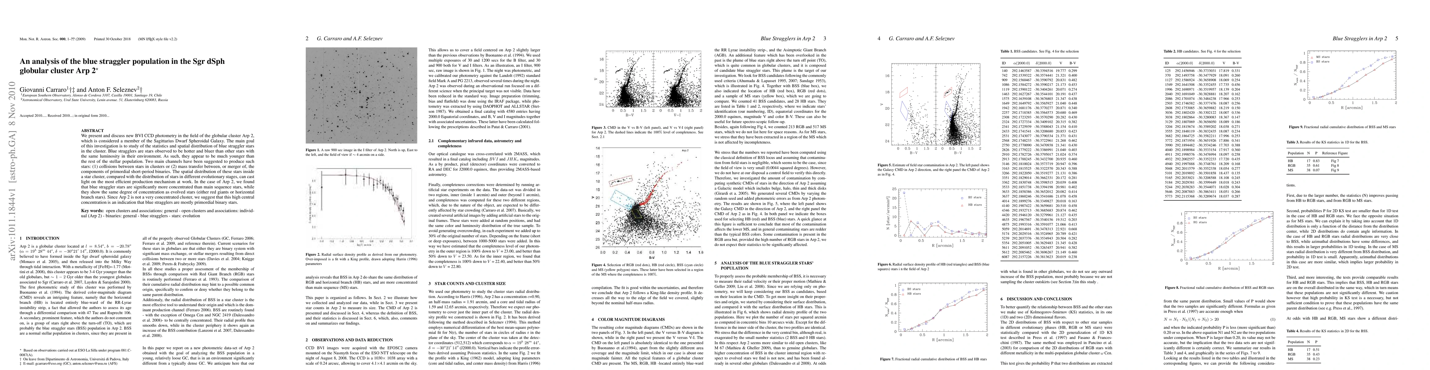This study analyzes the blue straggler stars in the Arp 2 globular cluster, finding they are more concentrated in the cluster's center than main sequence stars but equally distributed with evolved stars. This suggests blue stragglers in Arp 2 likely originate from primordial binary stars.