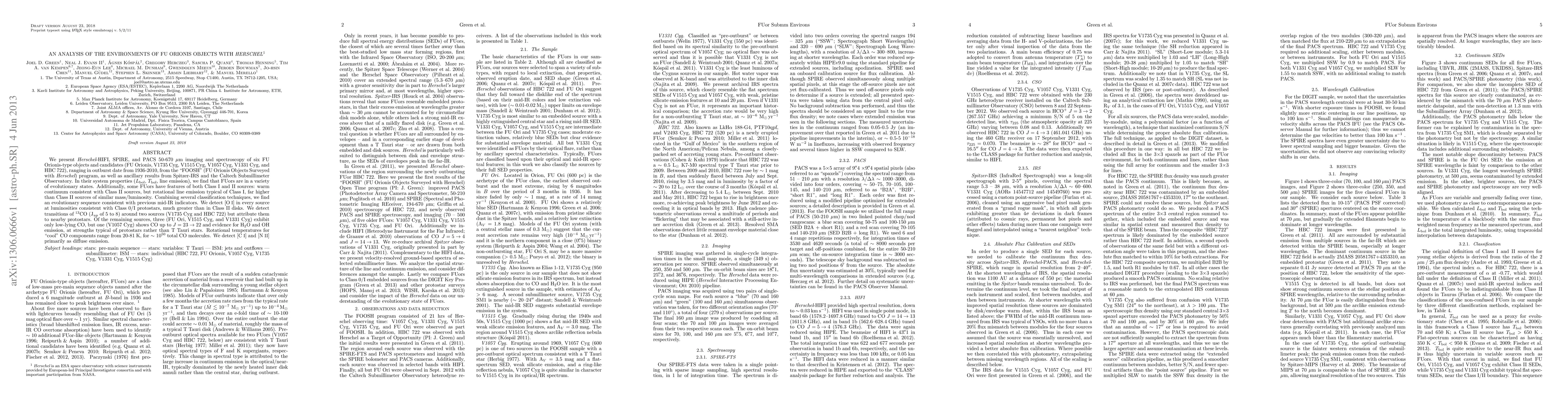 This study uses Herschel, Spitzer, and Caltech Submillimeter Observatory data to analyze the environments of six FU Orionis objects, revealing diverse evolutionary states and characteristics of both Class I and II sources. The findings suggest an evolutionary sequence and detect significant [O I], CO, and H2O emissions, indicating protostellar activity.