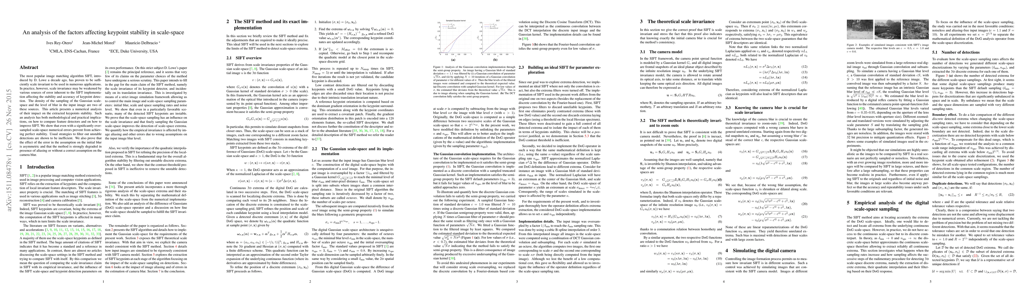 The most popular image matching algorithm SIFT, introduced by D. Lowe a decade ago, has proven to be sufficiently scale invariant to be used in numerous applications. In practice, however, scale invariance may be weakened by various sources of error inherent to the SIFT implementation affecting the stability and accuracy of keypoint detection. The density of the sampling of the Gaussian scale-space and the level of blur in the input image are two of these sources. This article presents a numerical analysis of their impact on the extracted keypoints stability. Such an analysis has both methodological and practical implications, on how to compare feature detectors and on how to improve SIFT. We show that even with a significantly oversampled scale-space numerical errors prevent from achieving perfect stability. Usual strategies to filter out unstable detections are shown to be inefficient. We also prove that the effect of the error in the assumption on the initial blur is asymmetric and that the method is strongly degraded in presence of aliasing or without a correct assumption on the camera blur.