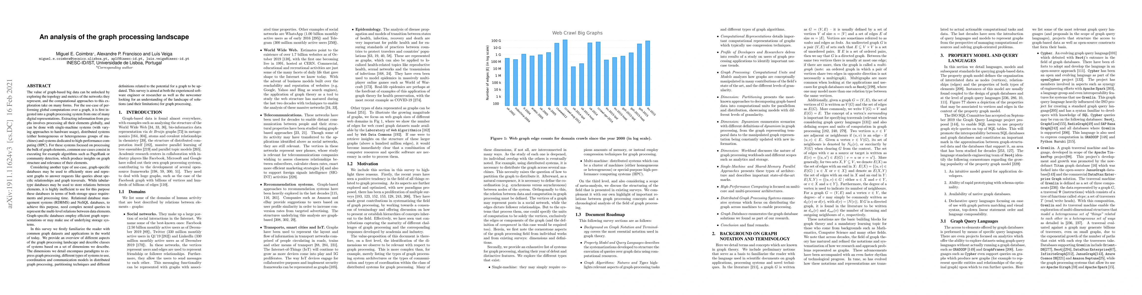 The value of graph-based big data can be unlocked by exploring the topology and metrics of the networks they represent, and the computational approaches to this exploration take on many forms. The use-case of performing global computations over a graph, it is first ingested into a graph processing system from one of many digital representations. Extracting information from graphs involves processing all their elements globally, and can be done with single-machine systems (with varying approaches to hardware usage), distributed systems (either homogeneous or heterogeneous groups of machines) and systems dedicated to high-performance computing (HPC). We provide an overview of different aspects of the graph processing landscape and describe classes of systems based on a set of dimensions we detail. The dimensions we detail encompass paradigms to express graph processing, different types of systems to use, coordination and communication models in distributed graph processing, partitioning techniques and different definitions related to the potential for a graph to be updated. This survey is aimed at both the experienced software engineer or researcher as well as the newcomer looking for an understanding of the landscape of solutions (and their limitations) for graph processing.