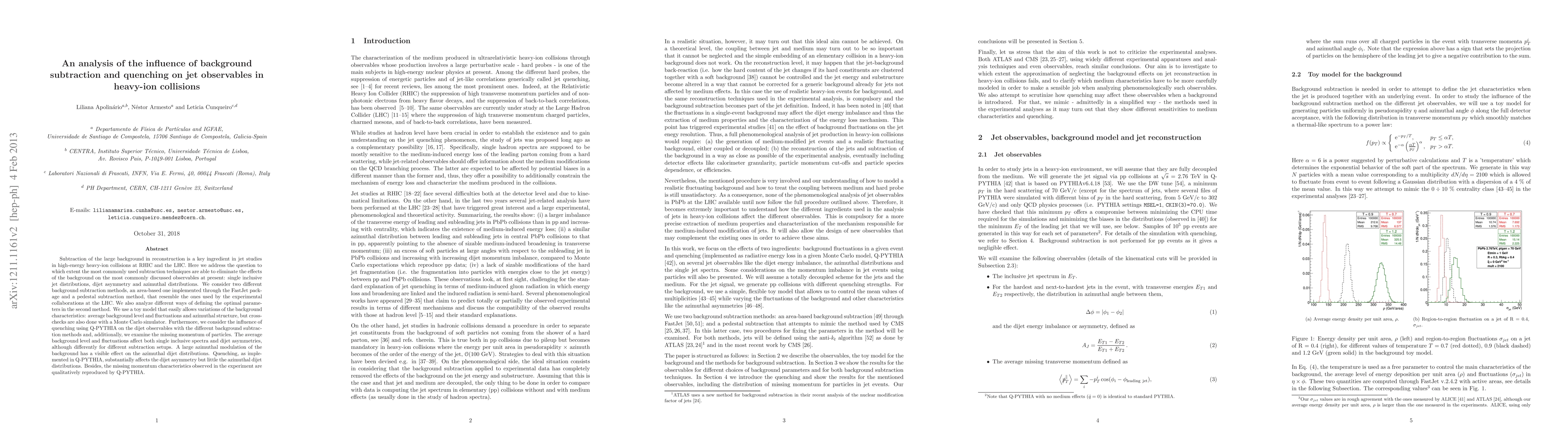 This paper investigates the impact of background subtraction techniques and quenching on jet observables in heavy-ion collisions, finding that while background subtraction methods can mitigate background effects on single inclusive jet distributions and dijet asymmetries, quenching significantly alters dijet asymmetries but has minimal effect on azimuthal dijet distributions.