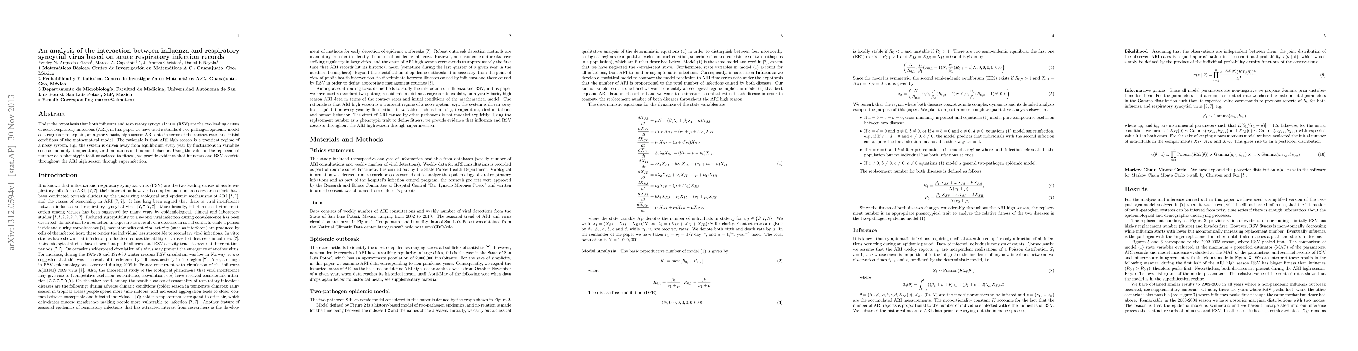 This paper analyzes the interaction between influenza and respiratory syncytial virus (RSV) using a two-pathogen epidemic model to predict acute respiratory infection (ARI) data. It finds evidence that both viruses coexist through superinfection, driven by fluctuating environmental and behavioral factors.