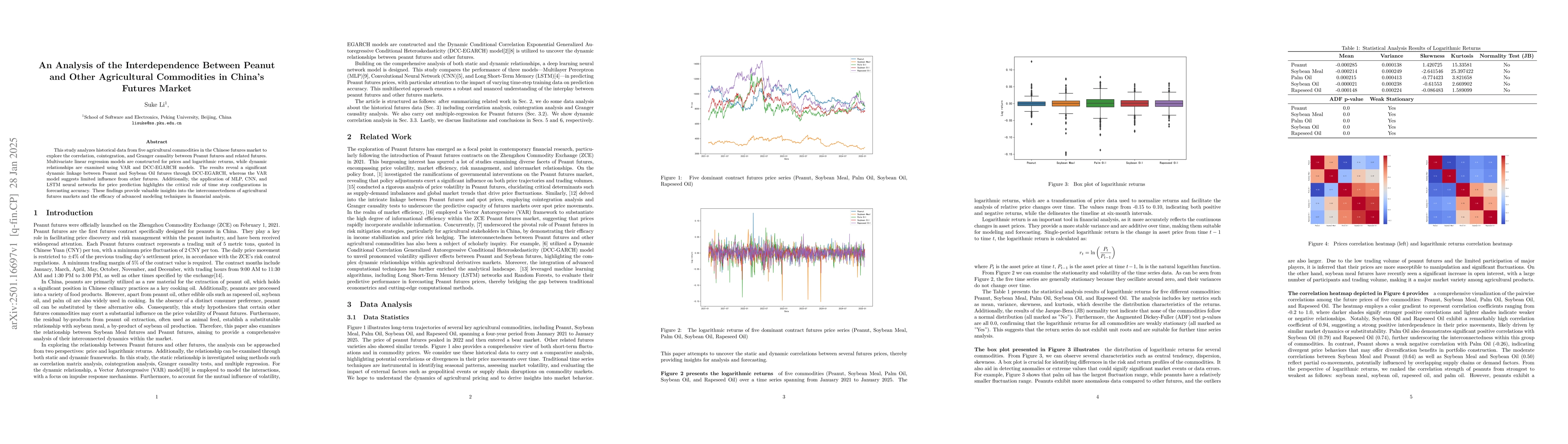 This work stands out by combining traditional econometric methods (regression, Granger causality) with advanced machine learning techniques (MLP, CNN, LSTM) to analyze and predict Peanut futures prices in the context of China's agricultural commodities futures market.