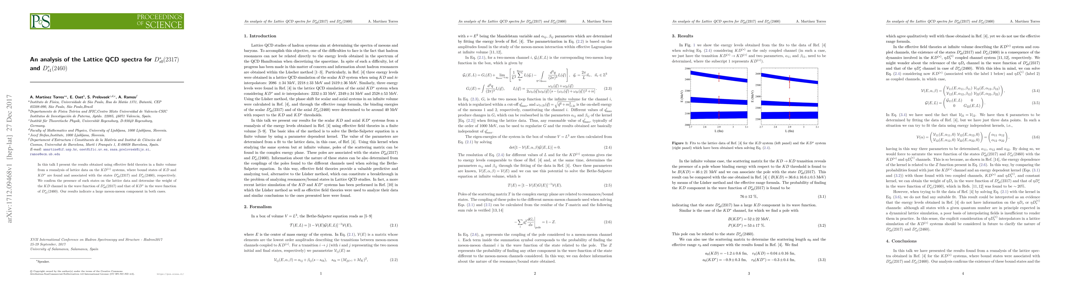 In this talk I present the results obtained using effective field theories in a finite volume from a reanalysis of lattice data on the $KD^{(*)}$ systems, where bound states of $KD$ and $KD^*$ are found and associated with the states $D^*_{s0}(2317)$ and $D^*_{s1}(2460)$, respectively. We confirm the presence of such states on the lattice data and determine the weight of the $KD$ channel in the wave function of $D^*_{s0}(2317)$ and that of $KD^*$ in the wave function of $D^*_{s1}(2460)$. Our results indicate a large meson-meson component in both cases.