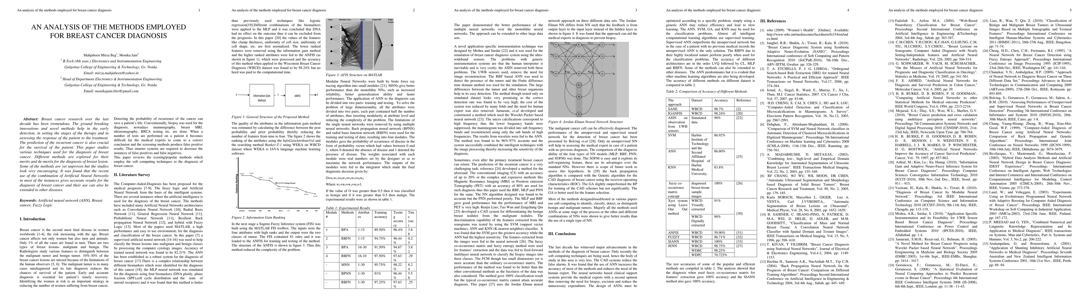 This paper evaluates various breast cancer diagnostic methods, highlighting their strengths and weaknesses. Recent advances, especially the integration of Artificial Neural Networks, show promising results in early detection and accurate diagnosis, suggesting potential broader applications in disease detection.