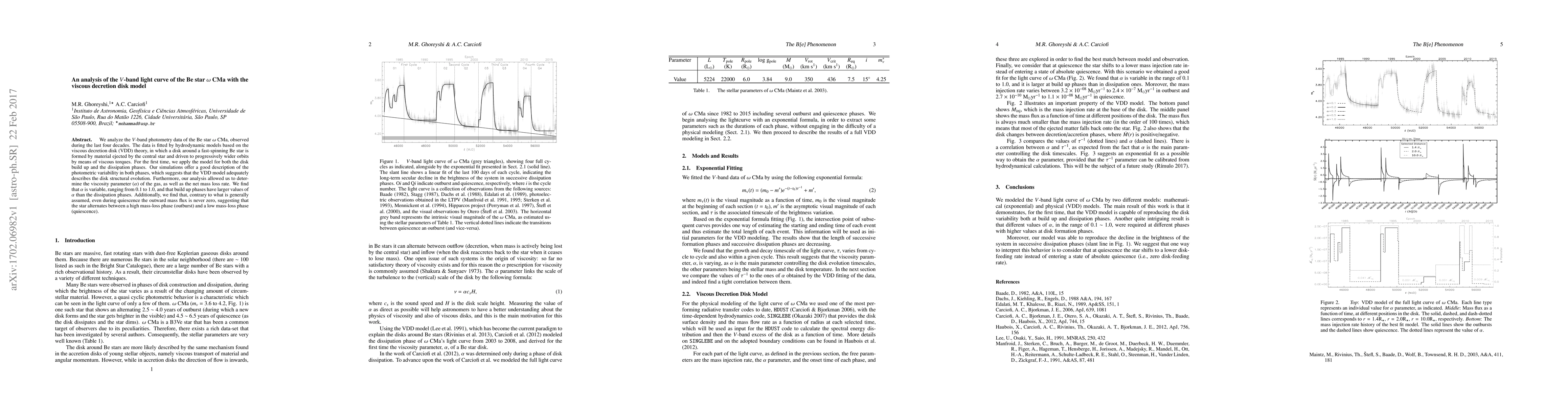 We analyze the V-band photometry data of the Be star omega CMa, observed during the last four decades. The data is fitted by hydrodynamic models based on the viscous decretion disk (VDD) theory, in which a disk around a fast-spinning Be star is formed by material ejected by the central star and driven to progressively wider orbits by means of viscous torques. For the first time, we apply the model for both the disk build up and the dissipation phases. Our simulations offer a good description of the photometric variability in both phases, which suggests that the VDD model adequately describes the disk structural evolution. Furthermore, our analysis allowed us to determine the viscosity parameter (alpha) of the gas, as well as the net mass loss rate. We find that alpha is variable, ranging from 0.1 to 1.0, and that build up phases have larger values of alpha than the dissipation phases. Additionally, we find that, contrary to what is generally assumed, even during quiescence the outward mass flux is never zero, suggesting that the star alternates between a high mass-loss phase (outburst) and a low mass-loss phase (quiescence).