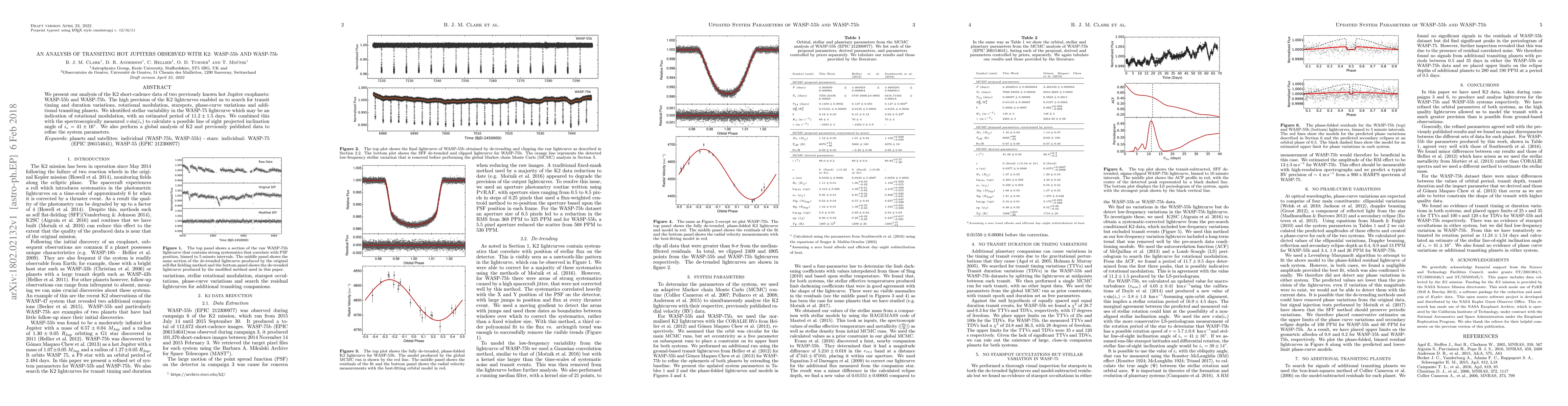 This paper analyzes K2 short-cadence data for hot Jupiters WASP-55b and WASP-75b, identifying stellar variability in WASP-75b that suggests rotational modulation. The study also refines system parameters using combined K2 and previous data.