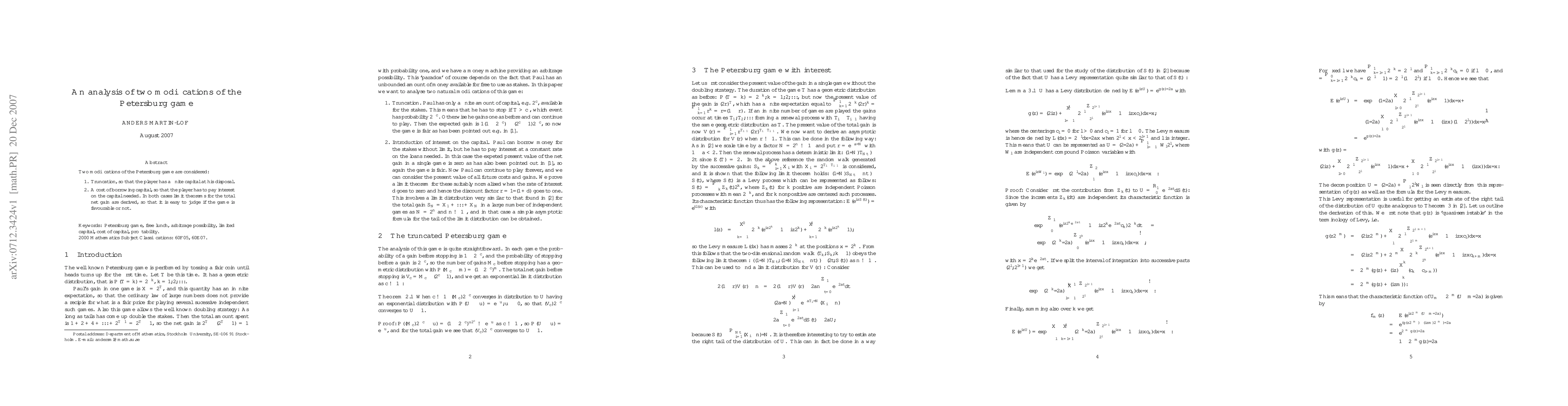 Two modifications of the Petersburg game are considered: 1. Truncation, so that the player has a finite capital at his disposal. 2. A cost of borrowing capital, so that the player has to pay interest on the capital needed. In both cases limit theorems for the total net gain are derived, so that it is easy to judge if the game is favourable or not.