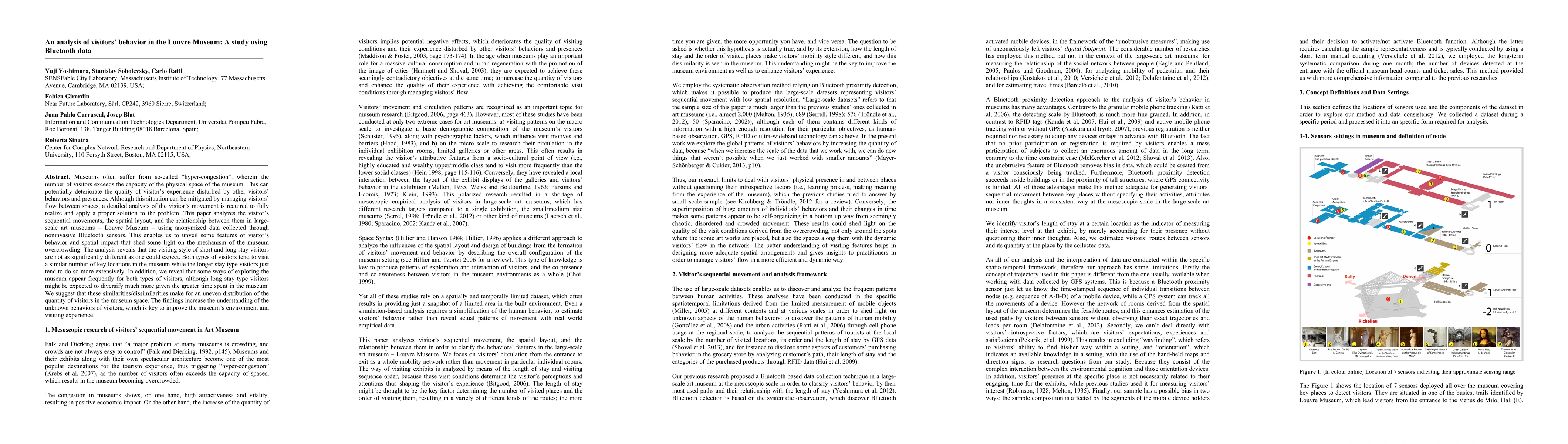 This study analyzes visitor behavior at the Louvre Museum using Bluetooth data to understand hyper-congestion. Findings show that both short and long stay visitors exhibit similar movement patterns, visiting similar key locations, which contributes to uneven visitor distribution and overcrowding.