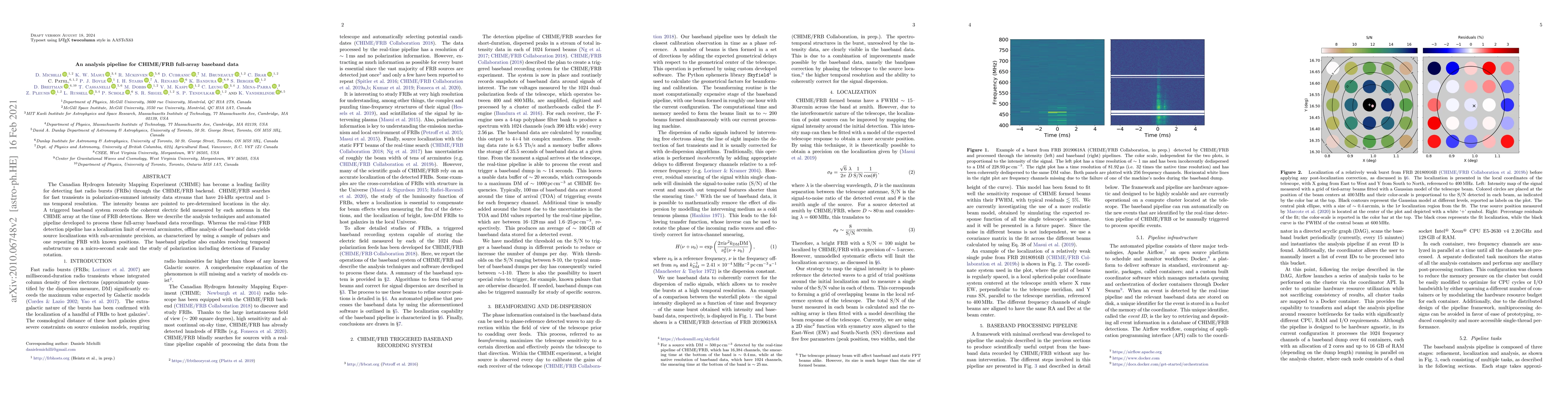 This paper outlines an analysis pipeline for CHIME/FRB full-array baseband data, detailing techniques to process and localize fast radio bursts with sub-arcminute precision, and enabling the study of temporal substructure and polarization effects.