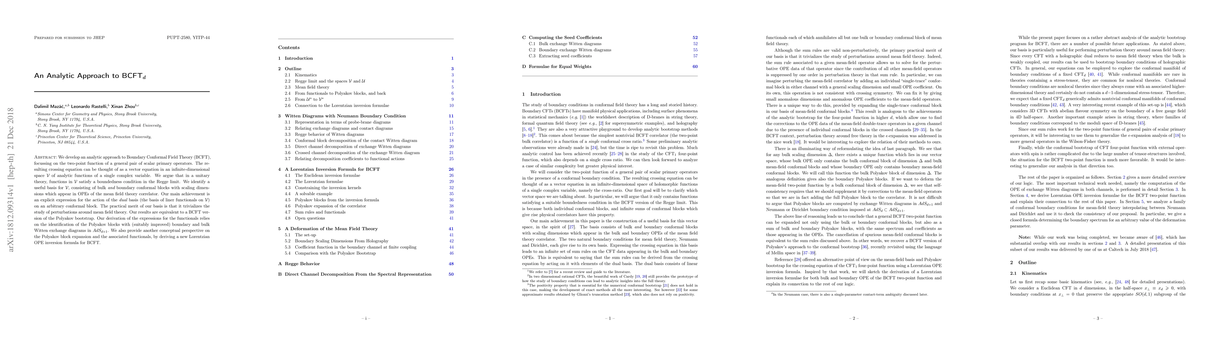 Researchers developed an analytic approach to Boundary Conformal Field Theory (BCFT), identifying a useful basis for vector functions that can study perturbations around mean field theory, and providing new expressions for action of dual basis on conformal blocks.