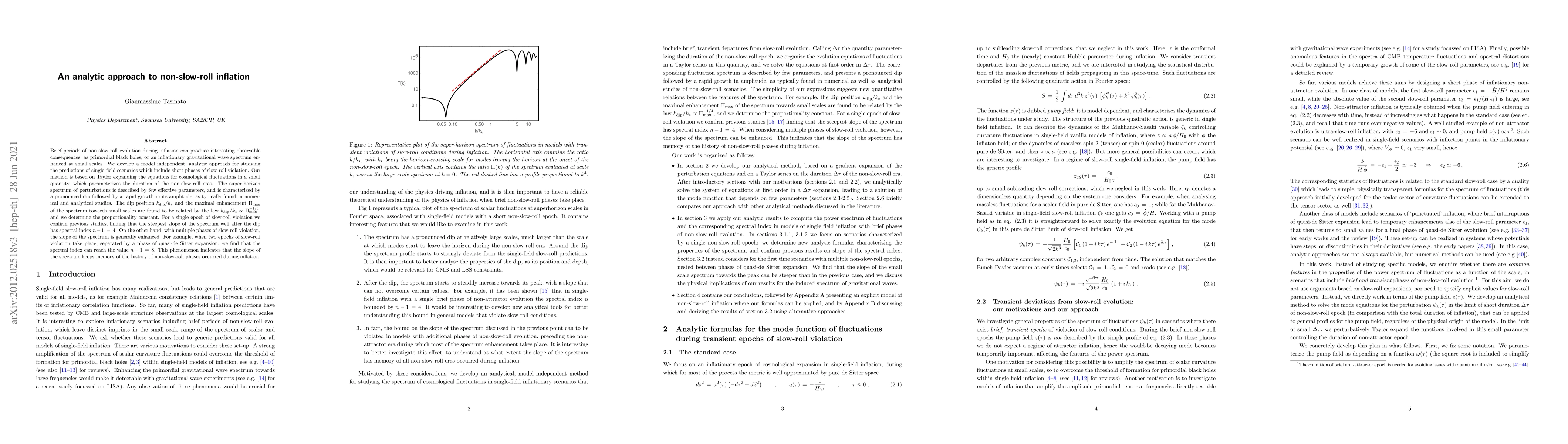 This paper develops an analytic approach to study single-field inflation scenarios with non-slow-roll phases, revealing a pronounced dip followed by rapid growth in the spectrum of cosmological perturbations. The spectral index after the dip is shown to depend on the number of non-slow-roll epochs, indicating that the spectrum retains memory of the inflationary history.