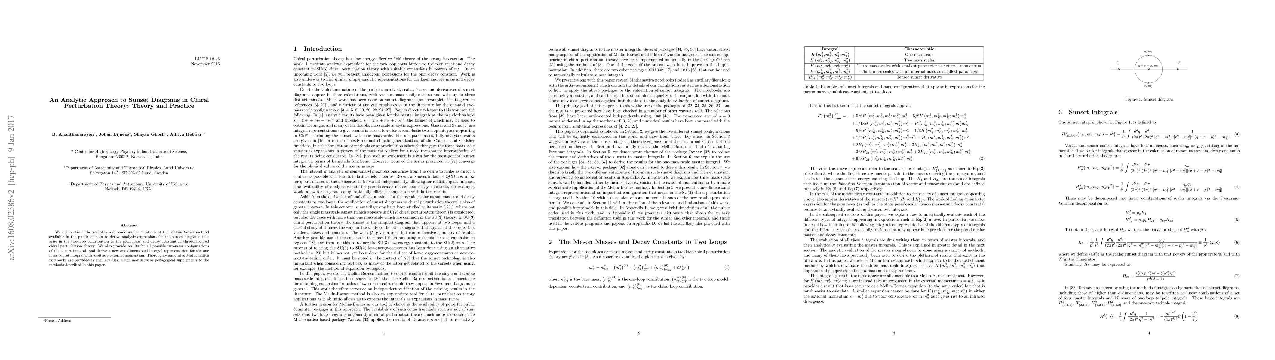 Researchers developed a method to calculate sunset diagrams in chiral perturbation theory, providing new results for pion mass and decay constant predictions.