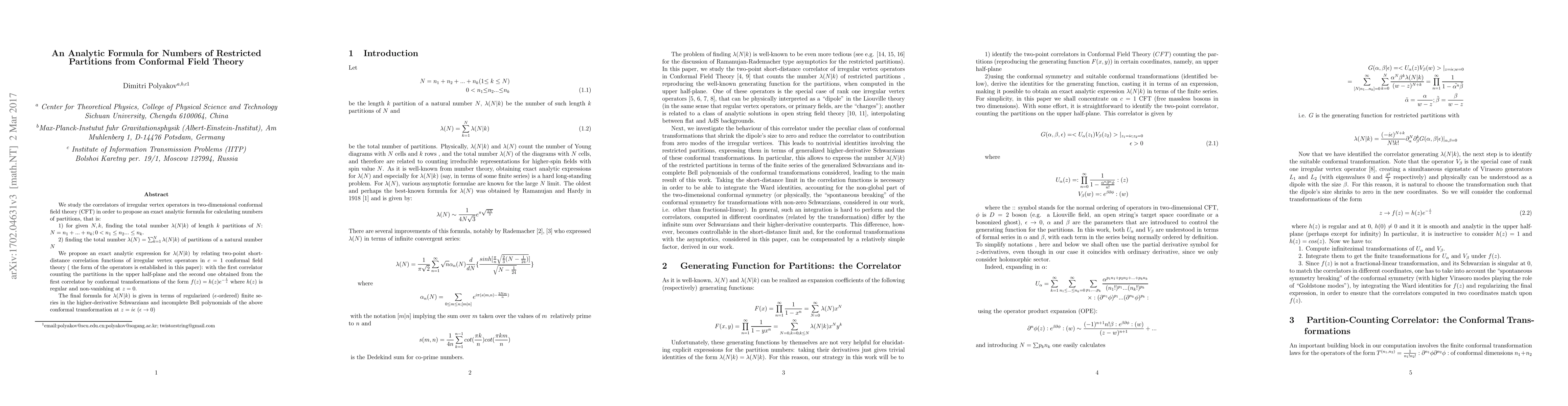 conformal field theory (CFT) in order to propose an exact analytic formula for