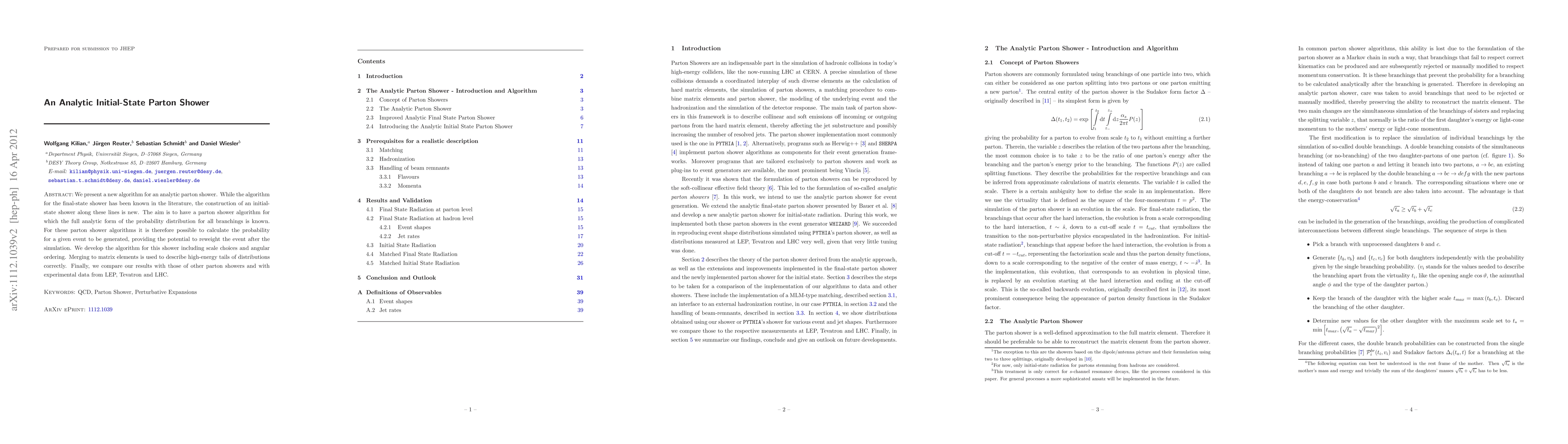 This paper introduces a novel analytic algorithm for initial-state parton showers, contrasting with existing final-state shower methods. The algorithm allows for the full analytic probability distribution for all branchings, enabling event reweighting and accurate high-energy tail descriptions via merging with matrix elements, and is validated against experimental data from LEP, Tevatron, and LHC.