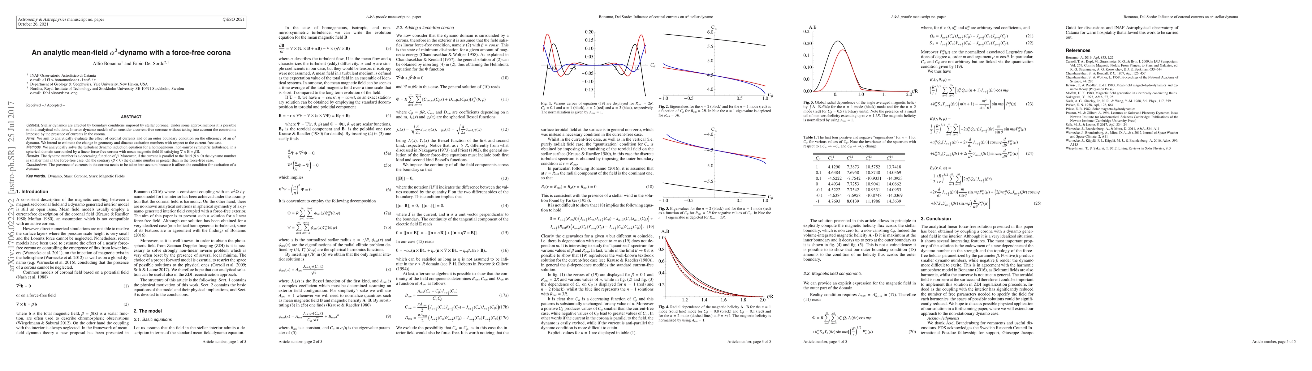 Stellar dynamos are affected by boundary conditions imposed by stellar coronae. Under some approximations it is possible to find analytical solutions. Interior dynamo models often consider a current-free coronae without taking into account the constraints imposed by the presence of currents in the corona. We aim to analytically evaluate the effect of coronal currents and of an outer boundary condition on the efficiency of an $\alpha^2$ dynamo. We intend to estimate the change in geometry and dinamo excitation numbers with respect to the current-free case. We analytically solve the turbulent dynamo induction equation for a homogeneous, non-mirror symmetric turbulence, in a spherical domain surrounded by a linear force-free corona with magnetic field B satisfying curl B = \beta B. The main result is that the dynamo number is a decreasing function of \beta. Moreover, if the current is parallel to the field (\beta > 0) the dynamo number is smaller than in the force-free case. On the contrary (\beta < 0) the dynamo number is greater than the in force-free case. We conclude that the presence of currents in the corona needs to be taken into account because it affects the condition for excitation of a dynamo.