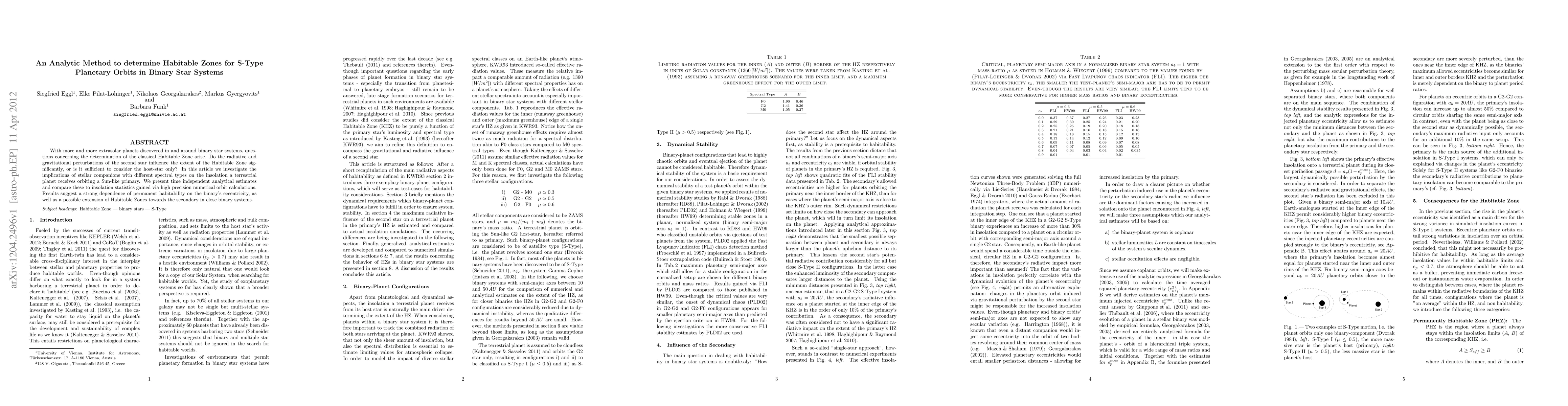 This paper develops an analytic method to determine habitable zones for planets orbiting Sun-like stars in binary systems, assessing the impact of a second star. It finds that the binary's eccentricity and the presence of a stellar companion significantly influence the extent of the habitable zone, potentially extending it towards the secondary star in close binaries.