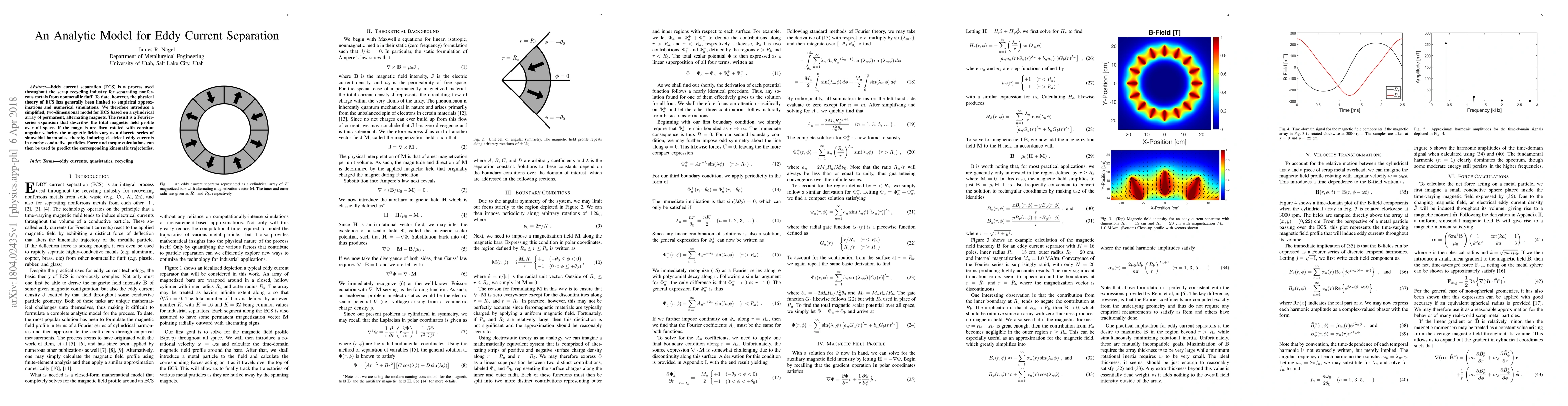 Eddy current separation (ECS) is a process used throughout the scrap recycling industry for separating nonferrous metals from nonmetallic fluff. To date, however, the physical theory of ECS has generally been limited to empirical approximations and numerical simulations. We therefore introduce a simplified, two-dimensional model for ECS based on a cylindrical array of permanent, alternating magnets. The result is a Fourier-series expansion that describes the total magnetic field profile over all space. If the magnets are then rotated with constant angular velocity, the magnetic fields vary as a discrete series of sinusoidal harmonics, thereby inducing electrical eddy currents in nearby conductive particles. Force and torque calculations can then be used to predict the corresponding kinematic trajectories.