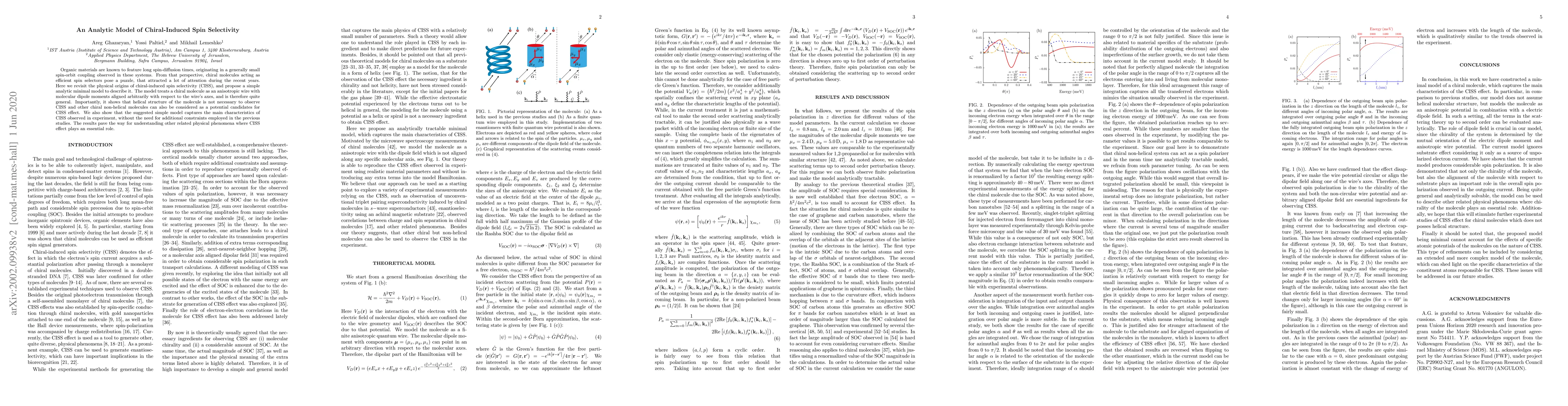 A simple analytic model describes chiral-induced spin selectivity in organic materials without requiring a helical structure, opening up possibilities for non-helical molecules to exhibit the phenomenon.