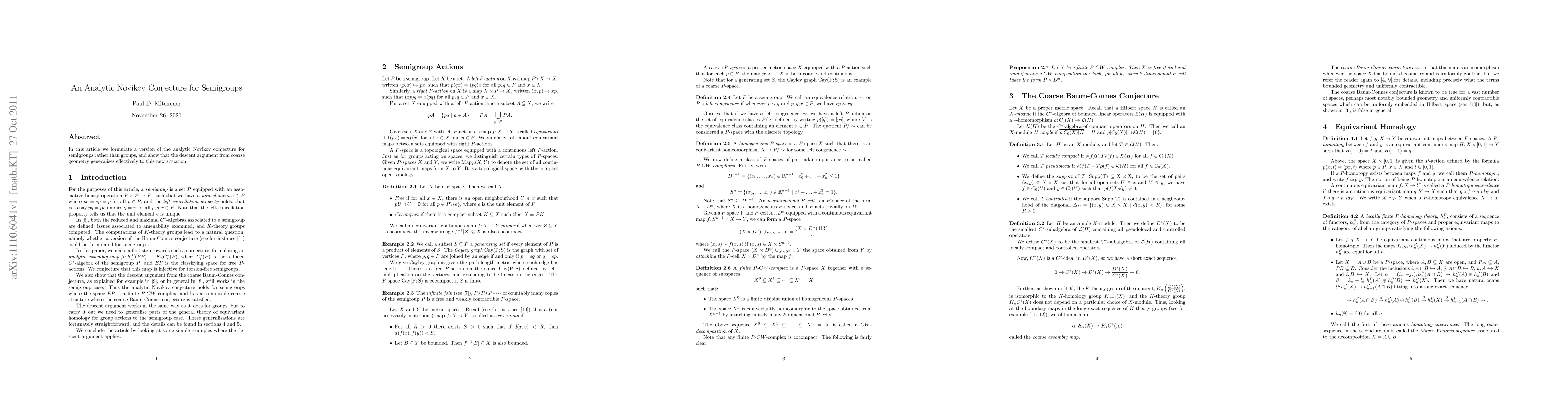 Researchers develop an analytic Novikov conjecture for semigroups, extending a coarse geometry argument to show the theory holds true in this new context.