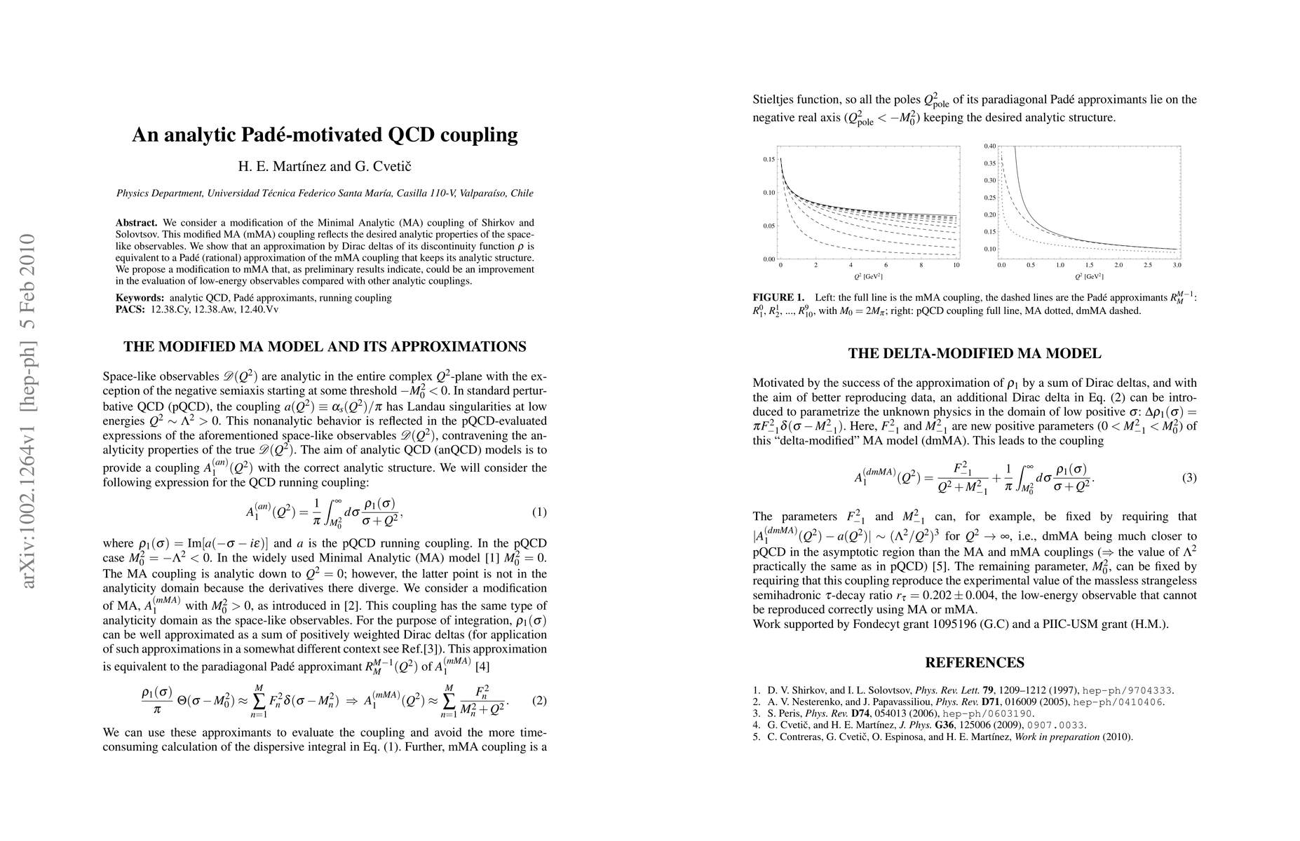 We consider a modification of the Minimal Analytic (MA) coupling of Shirkov and Solovtsov. This modified MA (mMA) coupling reflects the desired analytic properties of the space-like observables. We show that an approximation by Dirac deltas of its discontinuity function $\rho$ is equivalent to a Pad\'e (rational) approximation of the mMA coupling that keeps its analytic structure. We propose a modification to mMA that, as preliminary results indicate, could be an improvement in the evaluation of low-energy observables compared with other analytic couplings.