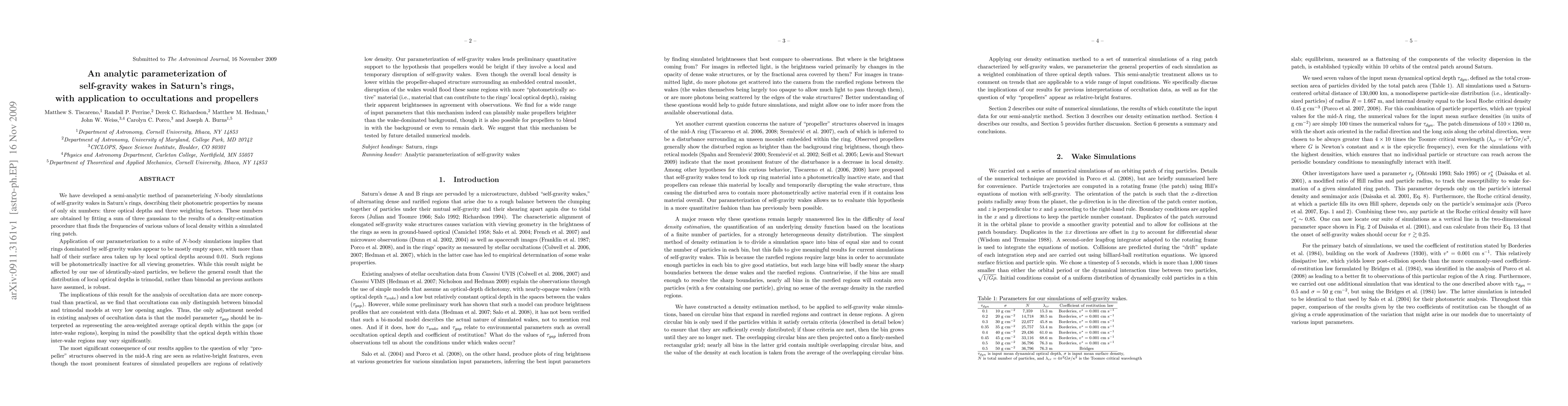 This paper presents a semi-analytic method to parameterize self-gravity wakes in Saturn's rings using six key numbers, revealing a trimodal distribution of local optical depths. It suggests that propellers appear bright due to temporary disruptions that increase "photometrically active" material, despite lower overall density.